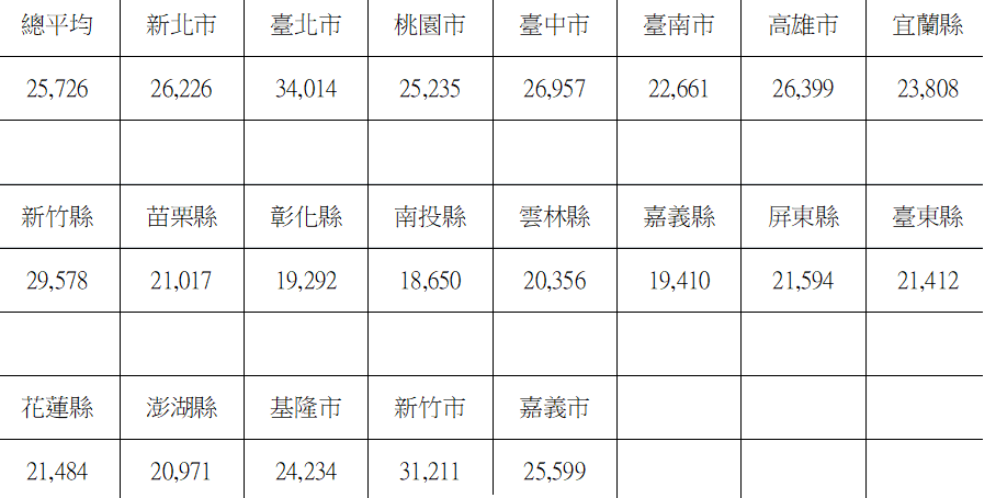 因為113年的資料尚未公布,以下為根據112年行政院主計總處公布的平均每人月消費支出之各縣市資料,以供參考: