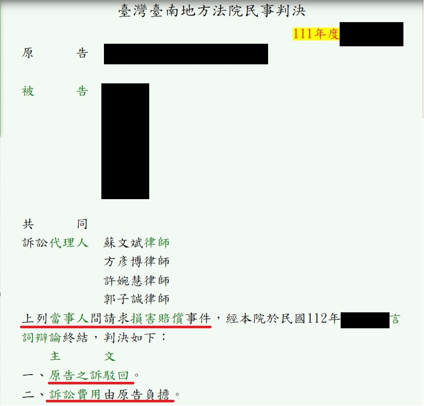 本案是很常見的醫療糾紛,病患家屬有時會在不明究理的情況下將所有醫療上發生的結果都歸咎予醫護人員,甚至認為醫院有保險,可以負擔高額的賠償費用或和解金,若不積極處理,只會讓未來更多人加以仿效,讓蘇文斌律師團隊來協助你,替辛苦的醫療人員擺脫不必要的訟累。