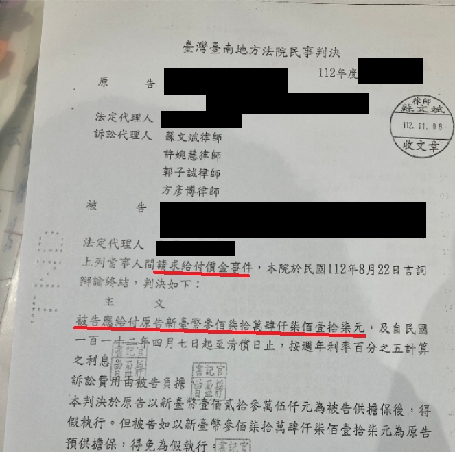 為此,甲公司尋求蘇文斌律師團隊(我在法律事務所)的幫忙,希望我們為甲公司討回應有的款項。而我們團隊在檢視了甲乙兩家公司的合約後,就合約內的條款詳細解釋給法官聽,最終獲得了法官的採信,將乙公司積欠的兩台機器價金總計3,704,717元,判決乙公司應全額付給甲公司。