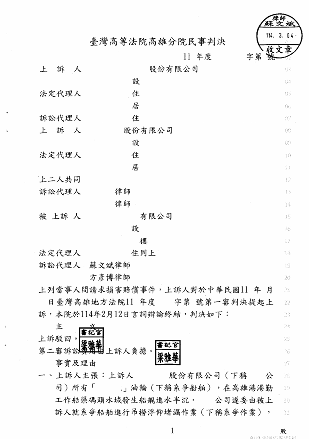 而這個案件因為案情複雜、證據繁多,且又涉及海事專業及鑑定,從案發到最終判決確定,整整花了四年時間,我們才取得最終勝利。