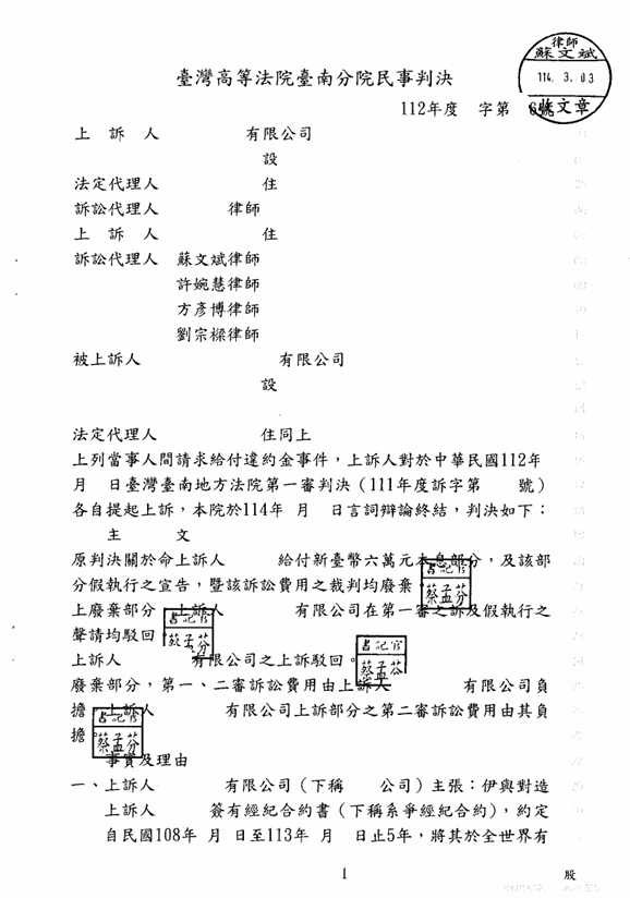 雖然法院判賠金額很低,但當事人仍覺得不甘心,認為自己並無違約。經紀公司也不死心,認為可以再請求更多賠償,於是雙雙上訴提起二審。這時蘇文斌律師團隊(我在法律事務所)與當事人再次深入討論案情,回頭找出可以佐證的細節,並取得實際聯絡記錄與往來信件。結果證明:真正的合作討論,是在雙方解約之後才展開的!