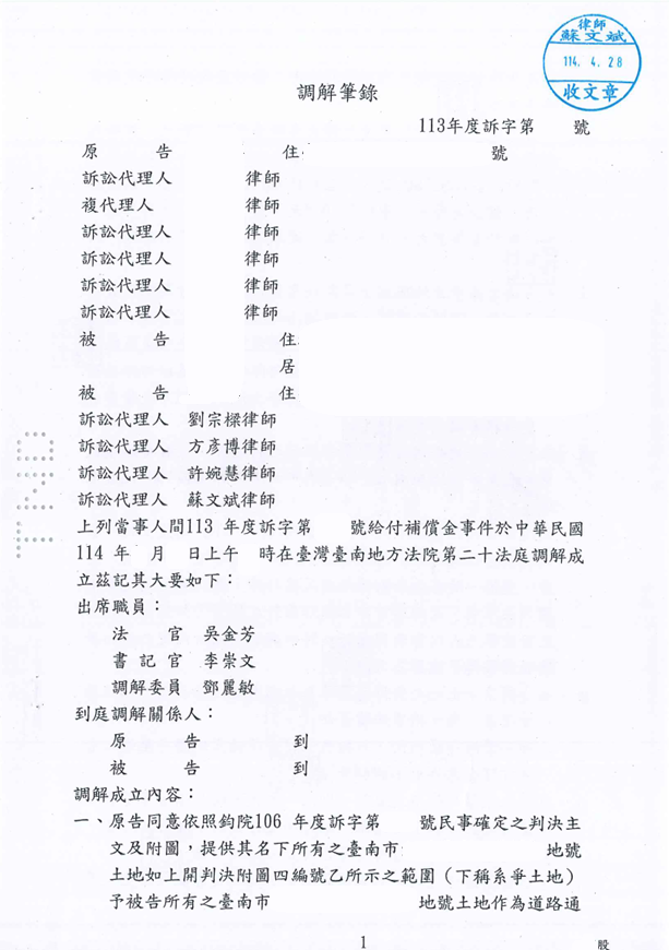 最後,我在法律事務所(蘇文斌律師團隊)協助雙方擬定和解方案。一方願意支付略高於市場行情的償金,代表尊重與誠意;另一方也同意不再追究過去與其他問題,願意幫忙後續的土地管理事宜。一紙和解,讓多年的鬱悶關係,終於放下。