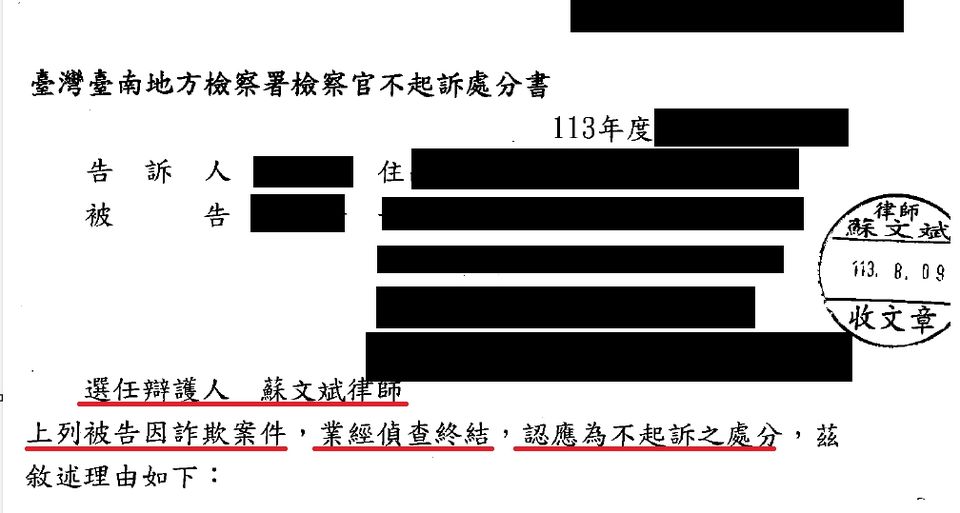 綜上,若因金錢糾紛而生的詐欺被告,歡迎委任對此類案件極具經驗的蘇文斌律師團隊(我在法律事務所);若是因為金錢糾紛而生的告訴人,因為較難成罪的緣故,更應該要委任本所替您彙整資料,細繹證物,找出提告的可能。