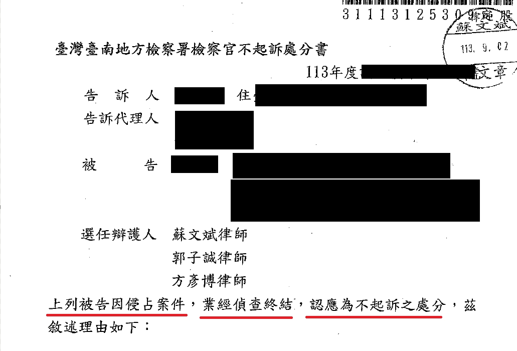 綜上,本所執以上數個論點,向檢座主張,乙男不該當侵占罪嫌,幸獲檢座採信,獲得不起訴處分。