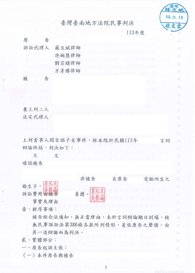 幸好,蘇文斌律師團隊(我在法律事務所)在此訴訟上有相當的經驗,而這位不幸的父親也在最後順利取得法院的判決,確認兩個孩子不是他的。